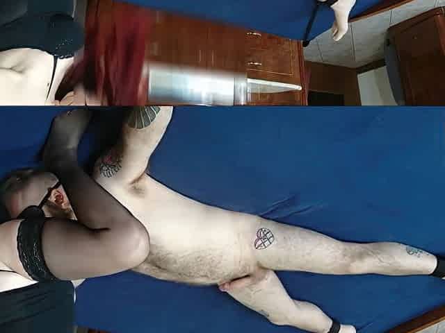 Two Dominant Porn Sluts In Sexy Lingerie Are Here To Please This Tied Up Dude P2