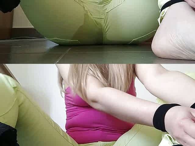 Made to piss in green jeans: she is tied
