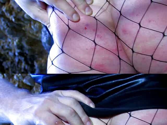 Bound and naked slave dp fucked in the cave