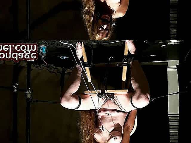 Tied up busty brunette has to endure the best pussy fuck on her entire life in a dungeon