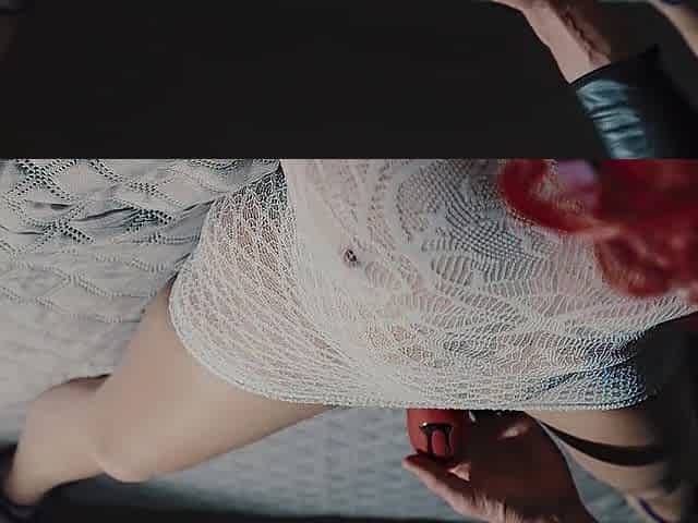 Oral pleasure tied on a daybed, wearing platform boots and hose, watch my wife's marvelous booty and legs