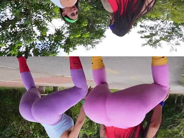 2 gorgeous large-bootied chicks exercise in the park and end up riding every other's booties