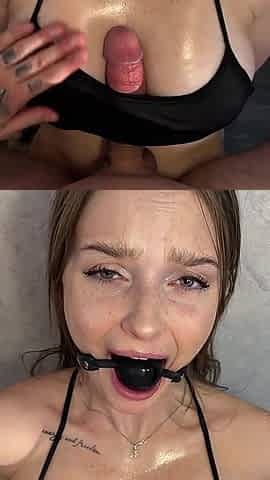 17 minutes of hogtied extreme blowjob and deepthroat with massive oral creampie