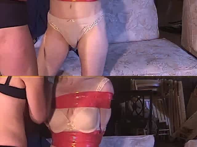 Italian Women Wrap Gagged And Bound With Red Tape