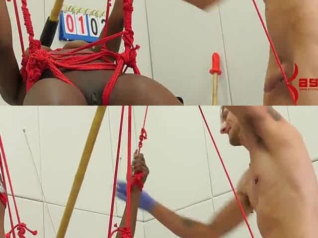 Supple ebony subject dominated whilst tied in tools