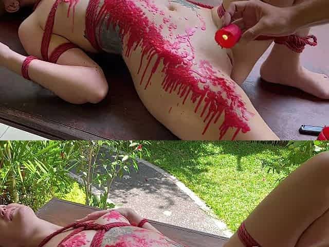 Shibari Practice - Tied Up Babe Squirts On The Bed