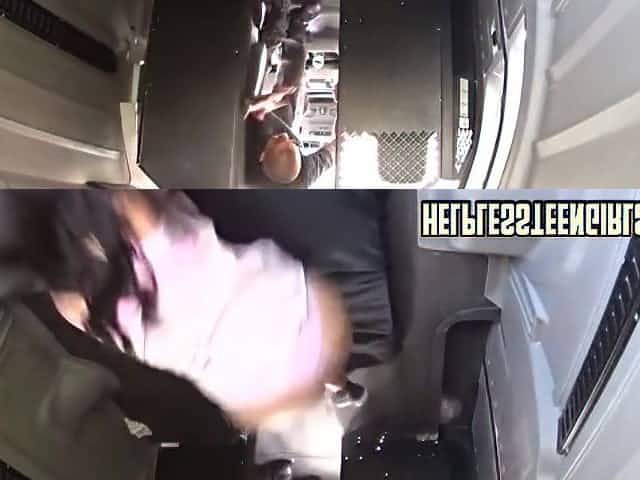 Lovely teenage gal gets fastened up at the back of this boyz van