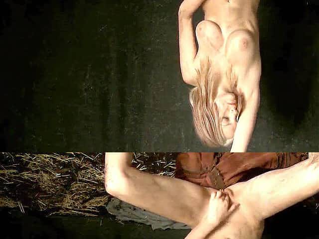 Nude woman, tied up girl smoking cigarette