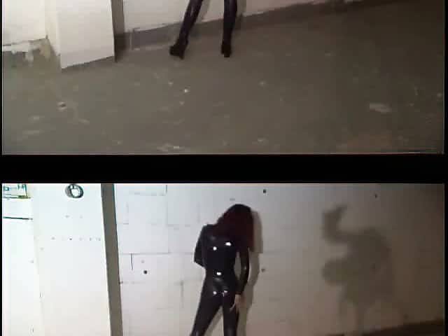 Latex bound slave gets tied up to a wall by her freaky mistress