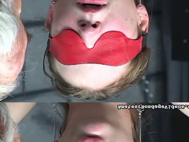 Tied babe with gag in her mouth loves to feel pain in the room