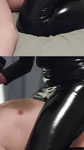 My Thong On Stories - I Pegg him & MAKE him CUM thru a CAGE b4 I SUCK HIM OFF & swallow it. side POV.