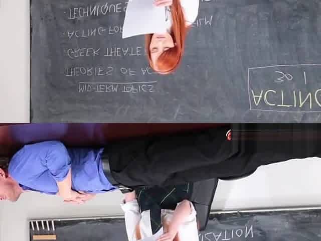 Slutty Redhead Spreads Her Tight Pussy For Teacher's Hard Cock