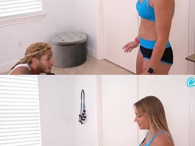 Sexy blonde fingerfucks her workout buddy's tight asshole