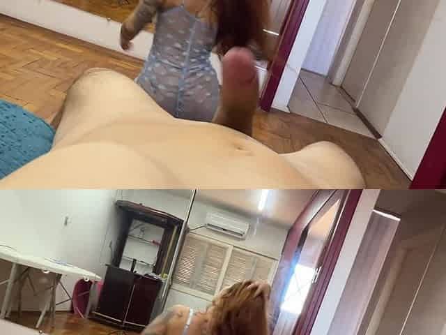 Jassi enjoys watching me stroke while giving a sweet blowjob before I take her tight pussy
