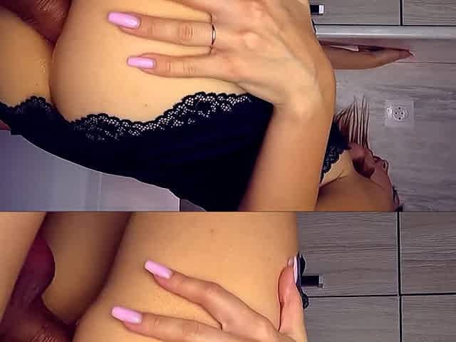 I ride the cock, bounce my tight ass and my thong rubs the cock