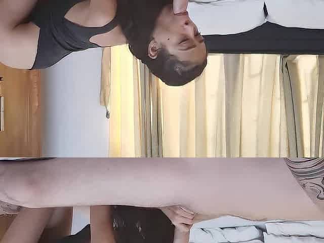 Latina Shows off in Front of Her While She Dresses in a Tight Jean, Lies on Her Bed and Lets Him Enjoy Her Big Ass, Licks Her Ha