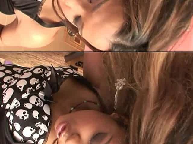 Asian whore licks her girlfriend's tight butthole on the kitchen counter - FapHouse