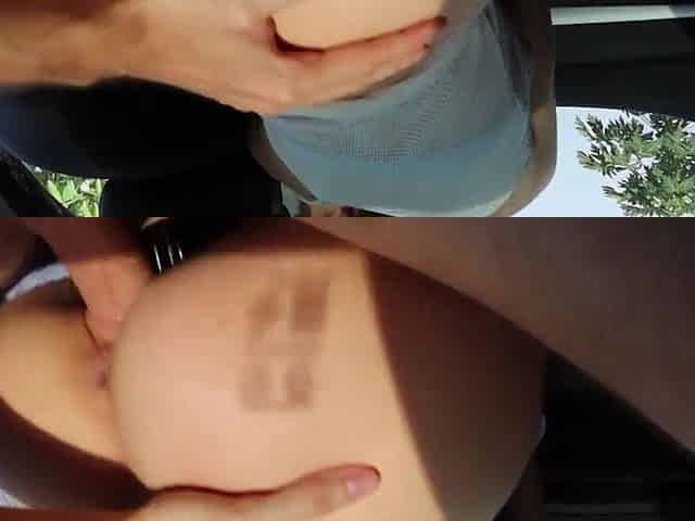 Tight ass kinky blode with big boobs masturbates outdoor