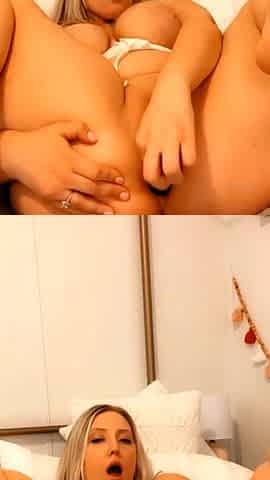 Cute blue eyed golden-haired masturbates to 3 intensive orgasms