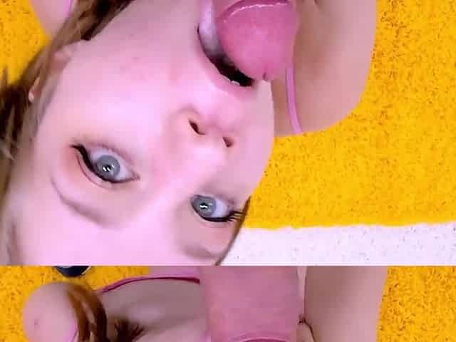 Cute 19 Teenie sucks big cock deepthroat in studio