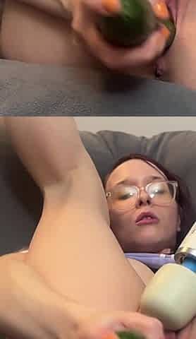 Filling My Tight Cunt with a Big Cucumber and Cumming
