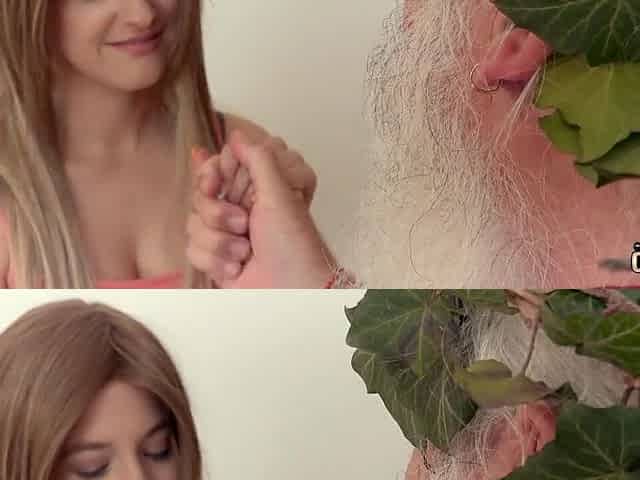 Sexy teenie has sex with grandpa with white beard