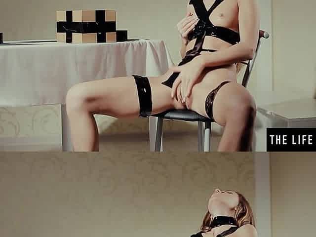 See her overspread in ebony tape as this babe masturbates to a wild climax