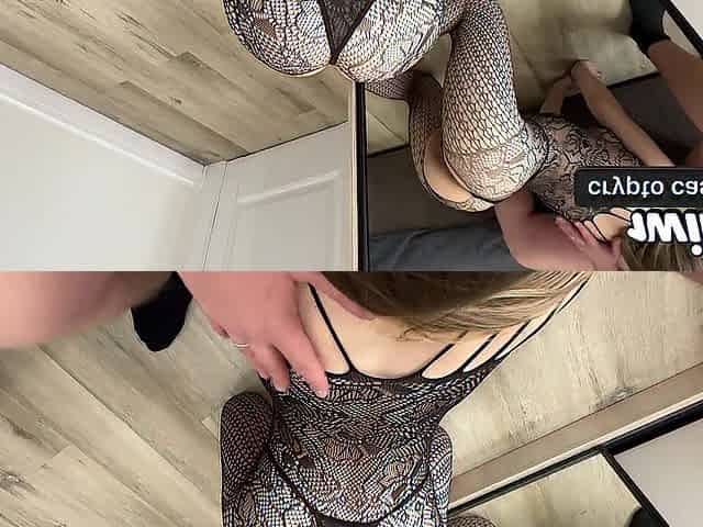 Подруга трахается сзади в узкую киску в любительском видео, кончил в белые носки в стрингах раком