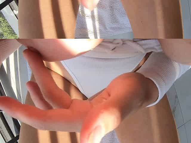 Balcony masturbation, 18 tight pussy