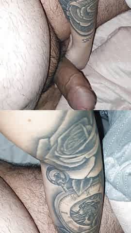 "Step mom with sexy tattoo handjob step son dick in bed"