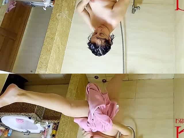 Shower. Voyeur camera. In Nature's Garb Regina Noir in the shower washes and rubs with oil. 4