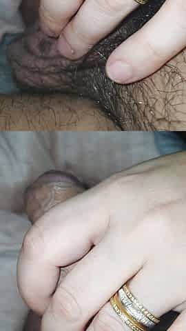 "Fucking a dildo and playing with my man's cock "