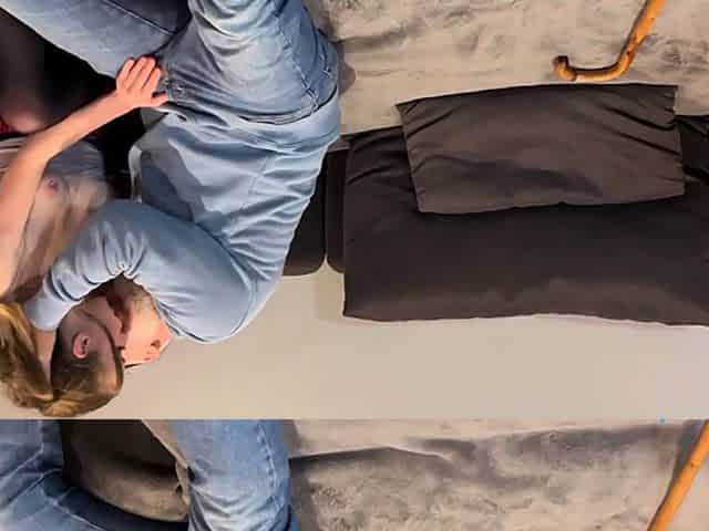 Oral pleasure from lascivious golden-haired whilst that guy bangs her cunt with toy