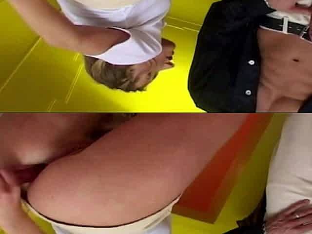 Blonde Babe Sucks Cock and Spreads Pussy in Workshop
