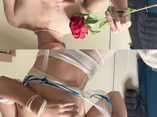 Hana Chan Sexy in College Girl Outfit Playing Rose Flower Under Pussy