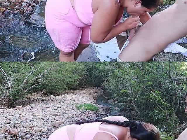 chica de gran culo pilla a un hombre masturbandose en el bosque y le agarra su polla