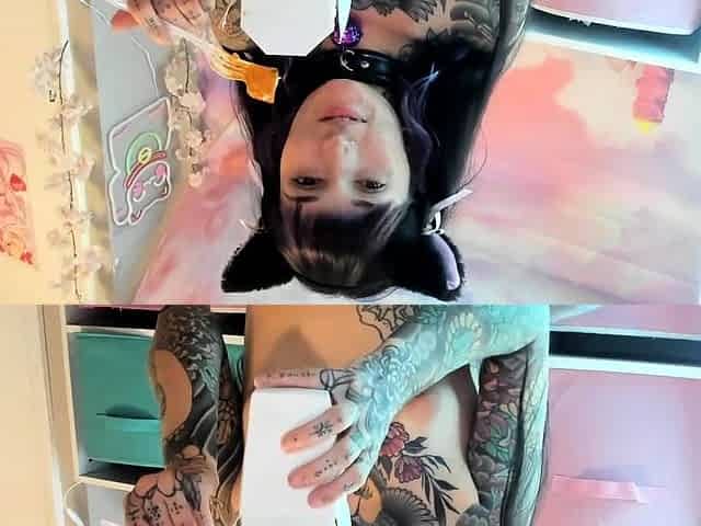 Wet tattooed raven babe Sahron with big boobs masturbates