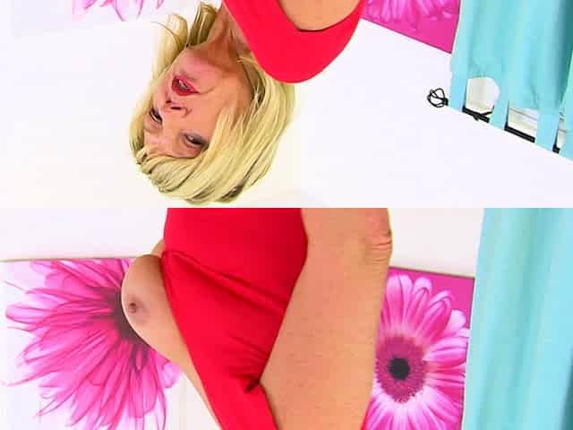 Blonde gilf Amy is not wearing underwear