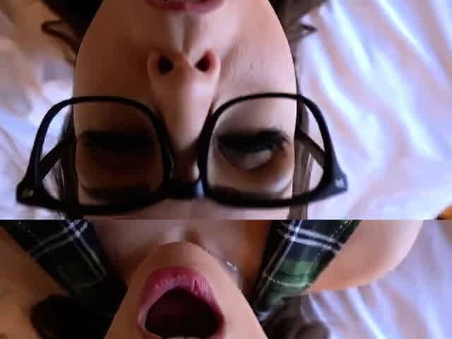 Small tit brunette gives a POV blowjob