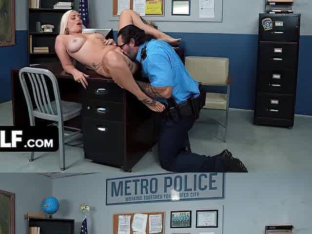 Large titted cougar blondie gets banged in the booty hard