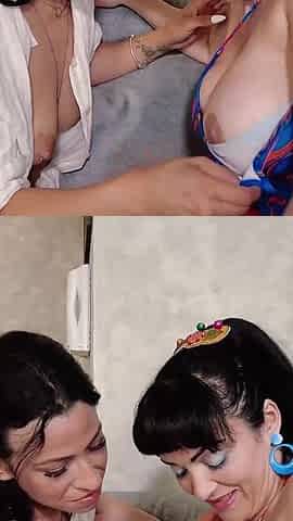 Together Better Scene-2_blonde and Brunette Lesbians MILF in Lingerie Enjoy Fucking Each Other with Dildos
