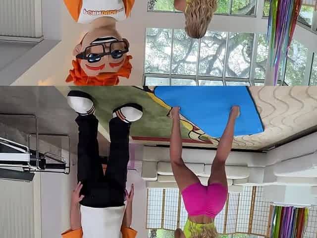 Slutty blonde Savvy Suxx takes facial after fucking a mascot