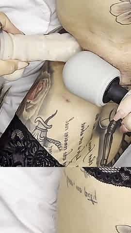 Tattooed babe with big tits and ass touches herself on webca