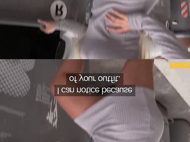 German brunette showed her natural tits before sex on the bang bus