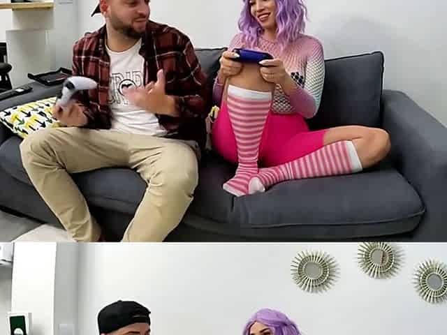 Gamer girl Pamela Mendoza gives an epic blowjob and takes face jizz