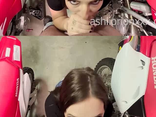 Busty MILF Ashli Orion takes a wild motocross ride in the messy bike garage