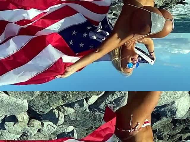 Lisa Ann in bikini, showcasing her iconic big tits and curvy figure.