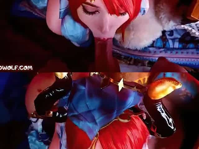 Breasty Lily Starfire jerking off my schlong with her large titties and juicy throat
