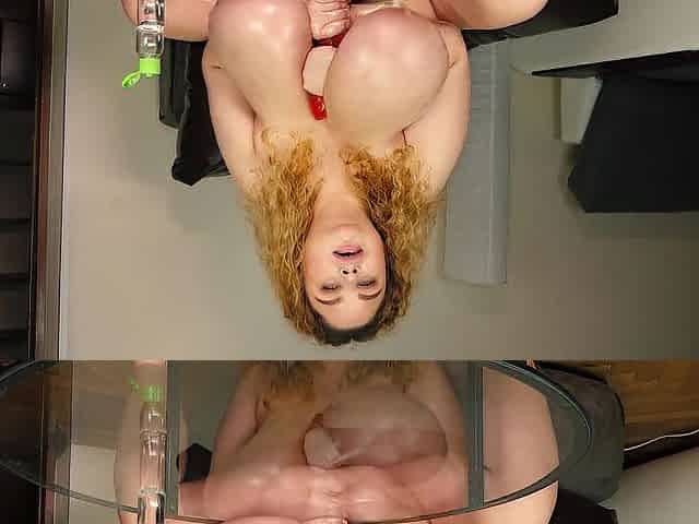 Chubby old lady Samantha Tits fucks her crack with a huge dildo