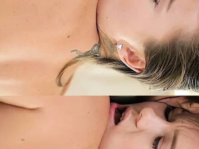 Blonde MILF shows tits in downblouse and brunettes babes do